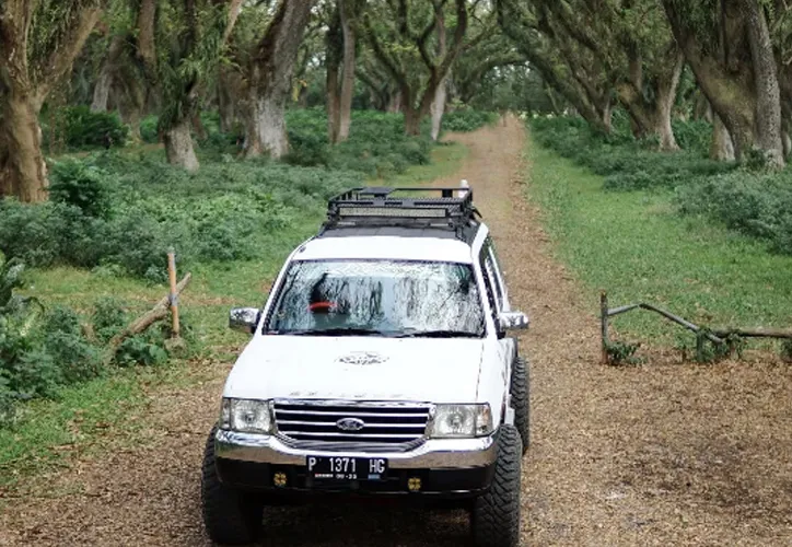 Djawatan, a hidden paradise in Banyuwangi, offers a magical view. Hundreds of giant rain trees with towering branches create a fairytale-like atmosphere. The sunlight that penetrates the gaps in the leaves adds a dramatic impression, as if taking us to another world.